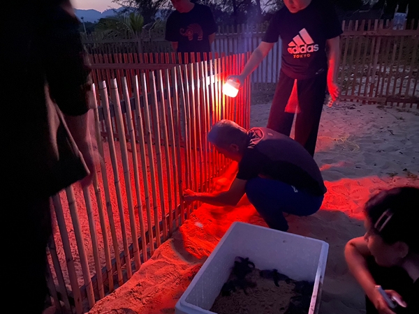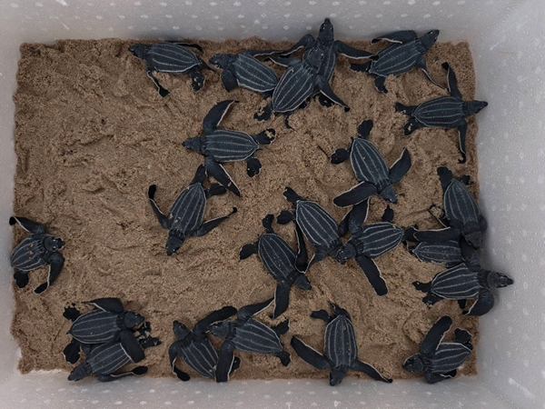 จึงเก็บลูกเต่าใส่ภาชนะฆ่าเชื้ออนุบาลให้แข็งแรงก่อนปล่อยลงสู่ทะเล และจัดเจ้าหน้าที่เฝ้าระวังดูแลหลุมฟักไข่ เพื่อรอลูกเต่าชุดที่สองที่จะฟักและขึ้นจากหลุม ก่อนจะดำเนินการขุดตรวจสอบภายในหลุมฟัก ในเวลาประมาณ 20.00 น. สำหรับหลุมฟักไข่เต่ามะเฟืองรังนี้แม่เต่าขึ้นมาวางไข่เมื่อวันที่ 24 มกราคม 2569 (ย้ายหลุมฟัก) รวมระยะเวลาการฟัก 57 วัน