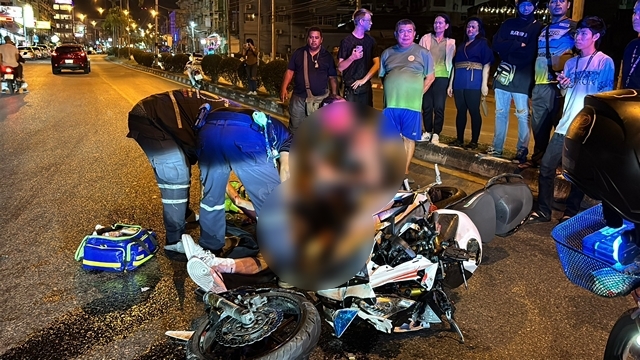 ชลบุรี-หนุ่มอิตาลี ควบบิ๊กไบค์ พุ่งชนเก๋งเลี้ยวยูเทิร์นเจ็บสาหัส