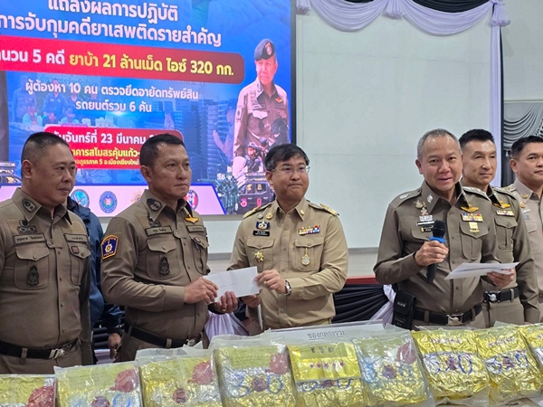 วันจันทร์ที่ 23 มีนาคม 2569 เวลา 11.00 น.ตำรวจภูธรภาค 5 แถลงข่าวคดียาเสพติดรายสำคัญจำนวน 5 คดี รวมของกลางยาบ้า 21 ล้านเม็ด , ไอซ์ 320 กก.