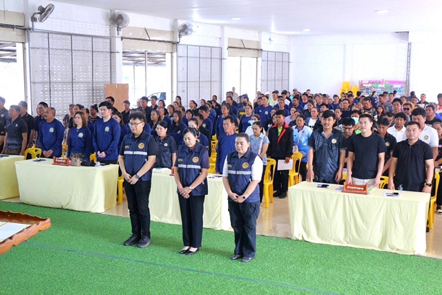 ณ หอประชุมที่ว่าการอำเภอท่าหลวง จังหวัดลพบุรี ผู้เข้ารับการอบรม ชุดรักษาความปลอกภัยหมู่บ้าน (ชรบ.) พร้อมกัน ณ หอประชุมอำเภอท่าหลวง จำนวน 315 คน