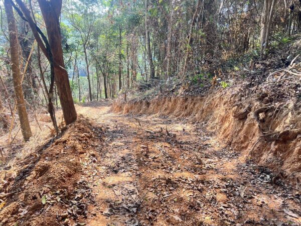 - แปลงแรก เนื้อที่กว่า 1 ไร่เศษ ถูกปรับพื้นที่เป็นถนนกว้าง 3-3.8 เมตร ยาวเกือบ 740 เมตร