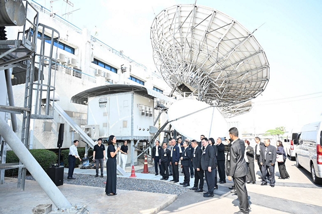 สถานีบริการภาคพื้นดินไทยคม จังหวัดปทุมธานี – เมื่อวันที่ 27 มีนาคม 2569 คณะกรรมาธิการการทหารและความมั่นคงของรัฐ วุฒิสภา นำโดย ร้อยตำรวจเอก ฉลอง ทองนะ รองประธานคณะกรรมาธิการการทหารและความมั่นคงของรัฐ คนที่สอง ในฐานะประธานคณะอนุกรรมาธิการฯ พร้อมด้วย นายไชยยงค์ มณีรุ่งสกุล เลขานุการและโฆษกคณะกรรมาธิการ นำคณะอนุกรรมาธิการกิจการทางทหารด้านไซเบอร์ เทคโนโลยีอาวุธยุทโธปกรณ์ และอุตสาหกรรมป้องกันประเทศ เดินทางศึกษาดูงานเรื่อง “การใช้ดาวเทียมเพื่อภารกิจความมั่นคง” ณ บริษัท ไทยคม จำกัด (มหาชน) โดยมี ดร.ปิยะวัฒน์ จริยเศรษฐพงศ์ รองประธานเจ้าหน้าที่บริหาร และรักษาการหัวหน้าคณะผู้บริหาร ด้านการค้า ให้การต้อนรับ