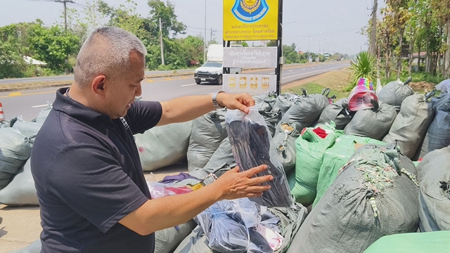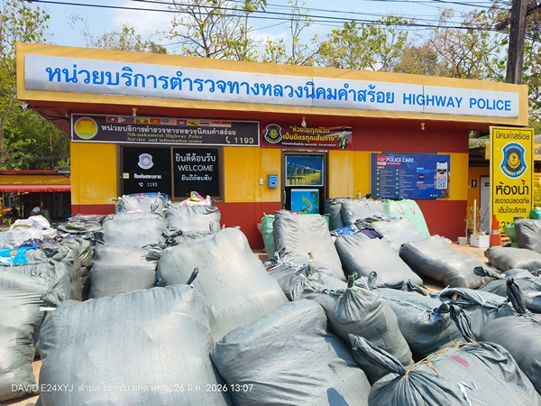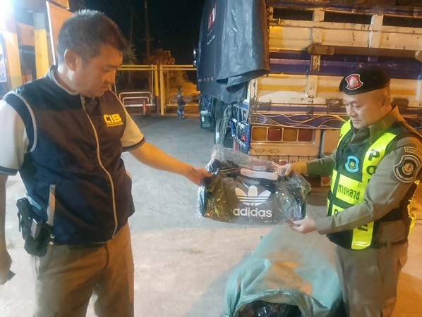 มุกดาหาร -เย้ย! ลอบขนแบรนด์ปลอมใกล้ด่านศุลกากรมุกดาหาร ตำรวจทางหลวงสกัดทันควัน ยึดของกลางล็อตใหญ่