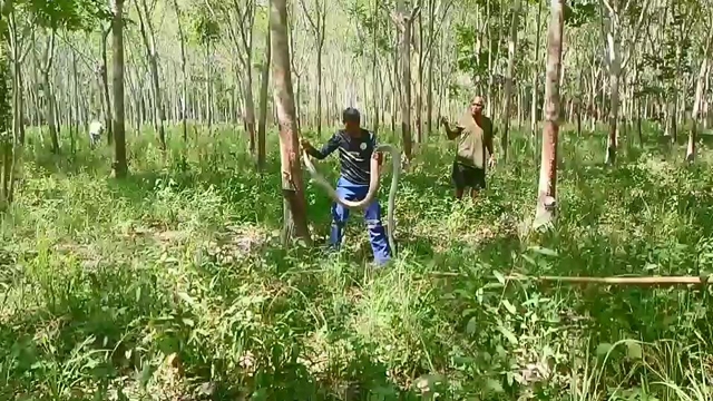 นาย พรศักดิ์ หลี อายุ 54 ปี ที่อยู่ 18/1 ม.5 ต.ท่าม่วง อ.เทพา จ.สงขลา ว่าขณะตนเองกำลังเดินเก็บน้ำยางอยู่ ในสวนยางพื้นที่ ม.2 ต.ประกอบ อ.นาทวี จ.สงขลา ได้มีสนัขเห่าไล่งูจงอางตัวใหญ่ขึ้นไปบนต้นยาง แล้วชาวบ้านได้ใช้ไม้ไผ่ทำบ่วงเพื่อคล้องคองูเพื่อจะเอางูลงมาจากต้นยาง แต่ไม่สามารถเอาลงได้เนื่องจากงูจงอางตัวใหญ่ใช้หางรัดกับกิ่งต้นยางแน่นไม่ยอมปล่อย ชาวบ้านจึงไม่สามารถนำงูจงอางลงมาจากต้นยางได้