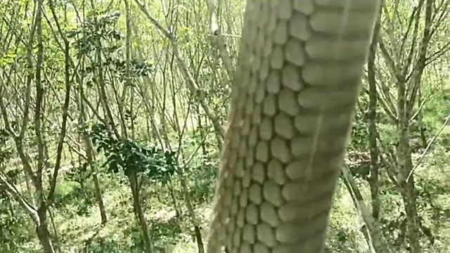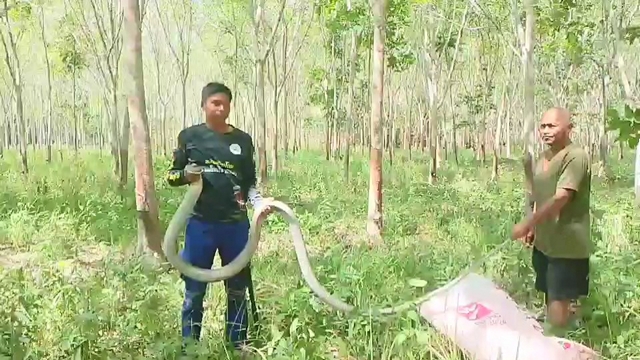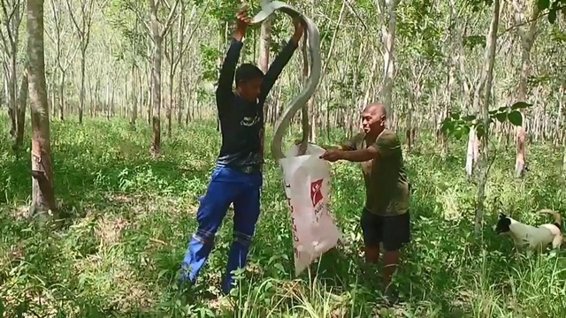 นาย พรศักดิ์ หลี อายุ 54 ปี ที่อยู่ 18/1 ม.5 ต.ท่าม่วง อ.เทพา จ.สงขลา ว่าขณะตนเองกำลังเดินเก็บน้ำยางอยู่ ในสวนยางพื้นที่ ม.2 ต.ประกอบ อ.นาทวี จ.สงขลา ได้มีสนัขเห่าไล่งูจงอางตัวใหญ่ขึ้นไปบนต้นยาง แล้วชาวบ้านได้ใช้ไม้ไผ่ทำบ่วงเพื่อคล้องคองูเพื่อจะเอางูลงมาจากต้นยาง แต่ไม่สามารถเอาลงได้เนื่องจากงูจงอางตัวใหญ่ใช้หางรัดกับกิ่งต้นยางแน่นไม่ยอมปล่อย ชาวบ้านจึงไม่สามารถนำงูจงอางลงมาจากต้นยางได้