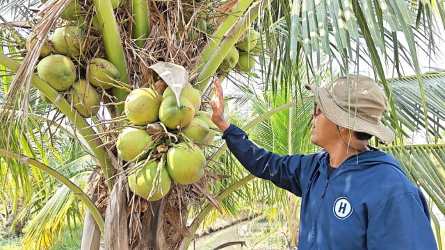 สำหรับมะพร้าวที่สวนของตนได้รับมาตรฐาน GAP โดยการใช้สารเคมีน้อยลงใช้อินทรีย์มากขึ้น เพราะที่บ้านมีโรงงานตัดแต่งผักและผลไม้ ซึ่งตนก็นำเอาเศษผักผลไม้เหล่านั้นมาทำปุ๋ยหมักเพื่อนำกลับมาใช้ในสวน ดังนั้นมะพร้าวในสวนของเราคุณลูกค้ามั่นใจได้ว่า ปลอดภัย รสชาติหวานอร่อย เพราะตนก็ทานอยู่ประจำ