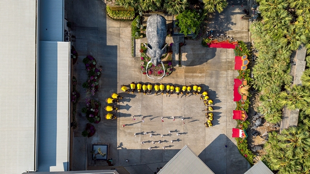 ในโอกาสเดียวกัน สวนนงนุชพัทยาได้จัดพิธีรับขวัญลูกช้างอย่างเรียบง่าย โดยมีพระครูเกษมกิตติโสภณ เจ้าคณะตำบลภูตาหลวง วัดสามัคคีบรรพต เป็นประธานประกอบพิธี ภายในพิธีมีขบวนนางรำและขบวนโขลงช้างกว่า 30 เชือก พร้อมพิธีคล้องพวงมาลัย ผูกสายสิญจน์ และเจิมหน้าผากแม่ช้างและลูกช้าง ตามประเพณีปฏิบัติของสวนนงนุช เพื่อความเป็นสิริมงคลแก่แม่ช้างและลูกช้าง