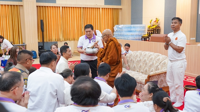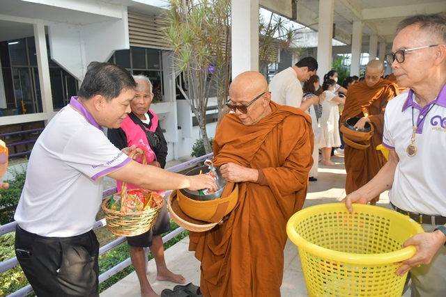 ภายในพิธี มีการทำบุญตักบาตรพระสงฆ์ โดยมีหลวงพ่อสายทอง เตชะธัมโม พร้อมคณะสงฆ์จากวัดป่าห้วยกุ่ม อ.เกษตรสมบูรณ์ จ.ชัยภูมิ ออกบิณฑบาต และประกอบพิธีทอดผ้าป่าสามัคคี เพื่อความเป็นสิริมงคล สมทบทุนซื้อครุภัณฑ์ทางการแพทย์ และน้อมสำนึกในพระมหากรุณาธิคุณอย่างหาที่สุดมิได้ดังกล่าว