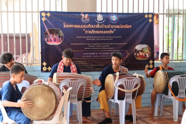 แม่ฮ่องสอน-สืบสานภูมิปัญญา ศิลปะ “ตีกลองมองเซิง” กลุ่มรักษ์วัฒนธรรมแม่สะเรียง ร่วมกับ ชุมชนมงคลทอง จัดอบรมเยาวชนหัวใจดนตรีพื้นบ้าน