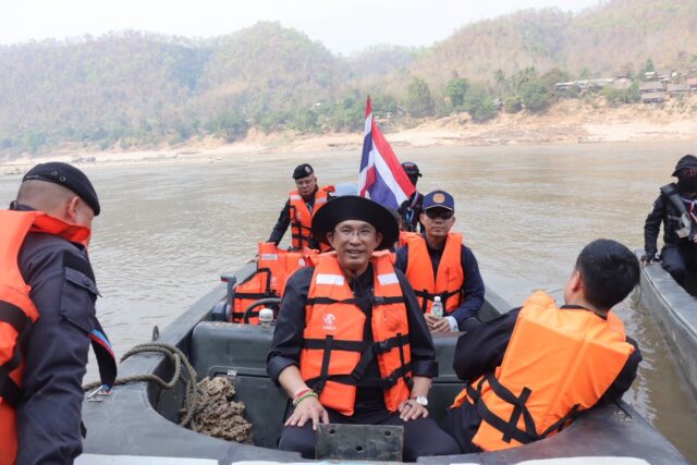แม่ฮ่องสอน-ผู้ว่าฯ แม่ฮ่องสอน ติดตามสถานการณ์ไฟป่าสาละวิน ตรวจเข้มชายแดนริมฝั่งลำน้ำสาละวิน ความมั่นคง-การค้าชายแดน พร้อมบำรุงขวัญกำลังพล