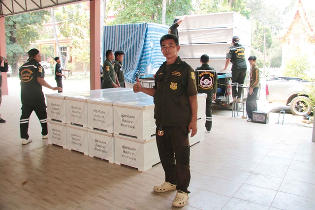ด้านนายชยพล วัชรอุดมกุล นายกสมาคมกู้ภัยสามัคคีกตัญญูกาฬสินธุ์ กล่าวว่า สำหรับบ้านหลังสุดท้ายหรือหีบศพ ที่ได้รับบริจาคจากผู้มีจิตศรัทธาดังกล่าว จะนำไปเก็บรักษาที่ศูนย์ประสานงานของสมาคมกู้ภัยสามัคคีกตัญญูกาฬสินธุ์ ณ เยื้องสี่แยกไฟแดงยางตลาด เพื่อรอให้บริการญาติผู้เสียชีวิตในพื้นที่และใกล้เคียง ได้มาติดต่อขอรับบริจาคได้ตามสะดวก โดยเป็นการให้ฟรี ไม่มีค่าใช้จ่ายแต่อย่างใด