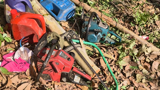 จากการตรวจสอบ พบของกลางจำนวนมาก ได้แก่รถยนต์กระบะ 1 คัน,ไม้ที่ถูกตัดจำนวนหนึ่ง,เลื่อยยนต์ 2 เครื่อง,อุปกรณ์ตัดไม้อีกหลายรายการ และอุปกรณ์การเสพยาเสพติดในจุดเกิดเหตุ