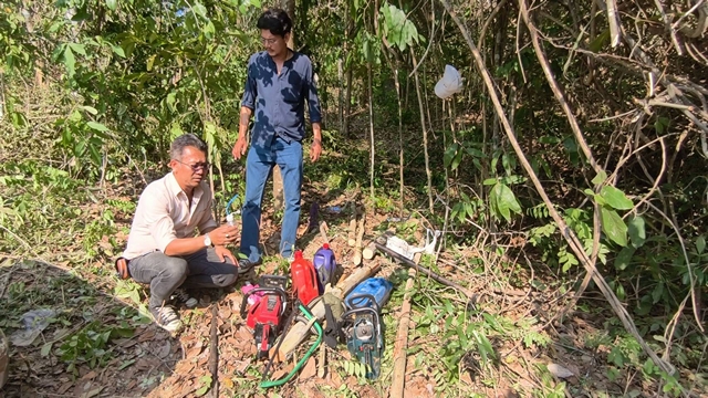 ขณะเข้าตรวจสอบ พบกลุ่มบุคคลกำลังตัดไม้และลำเลียงขึ้นรถกระบะ เมื่อเห็นเจ้าหน้าที่กลุ่มผู้กระทำผิดได้ทิ้งอุปกรณ์และวิ่งหลบหนีเข้าป่าไปคนละทิศละทาง เบื้องต้นสามารถควบคุมตัวผู้ต้องสงสัยไว้ได้ 1 ราย โดยผู้ต้องหาให้การปฏิเสธ อ้างว่าเป็นเพียงผู้รับจ้างขนไม้