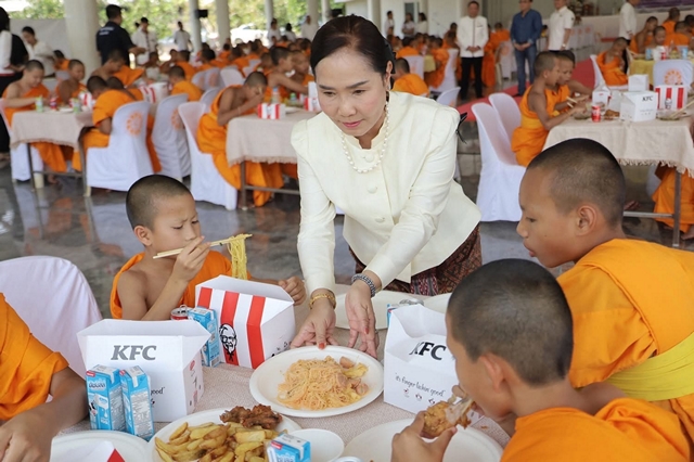 ผู้ว่าราชการจังหวัดกาฬสินธุ์ พร้อมด้วยส่วนราชการ ถวายภัตตาหารเพล ไก่ทอด เคเอฟซี สามเณรบรรพชาภาคฤดูร้อนถวายพระราชกุศล แด่พระพันปีหลวง และเฉลิมพระเกียรติกรมสมเด็จพระเทพรัตนราชสุดา
