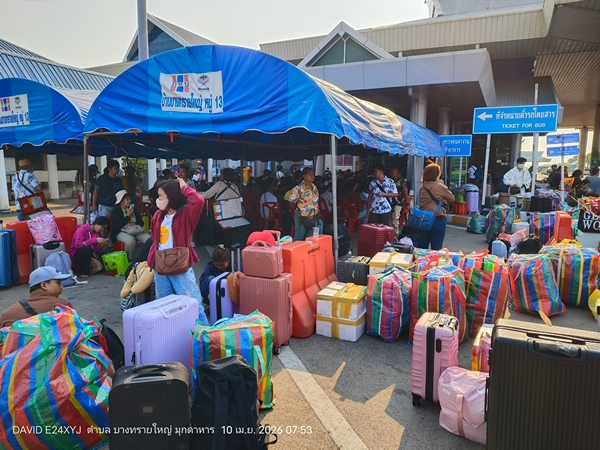 มุกดาหาร-ด่านตม.แตก! แรงงานลาวทะลักกลับบ้านสงกรานต์คาดพุ่งวันละ 5,000 คน ตม.ระดมกำลังเปิดช่องตรวจเต็มสูบ-จัดน้ำดื่มคลายร้อน