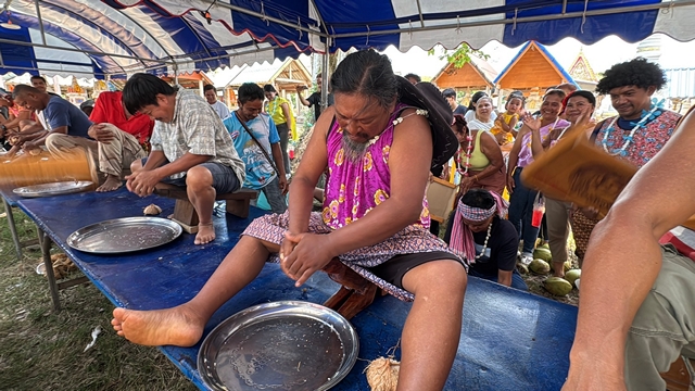 วันนี้ (12 เม.ย. 69) บรรยากาศสุดคึกคักที่ป่าช้าต้นหว้า หมู่ 5 ต.ทุ่มหมอ อ.สะเดา จ.สงขลา ชาวบ้านรวมตัวจัดงานประเพณี “วันว่าง”เพื่อทำบุญอุทิศส่วนกุศลให้บรรพบุรุษ แต่ที่กลายเป็นไฮไลท์สร้างเสียงหัวเราะคือการแข่งขัน “ขูดมะพร้าวด้วยเหล็กขูด”ประเพณีพื้นบ้านที่นับวันจะหาชมได้ยาก
