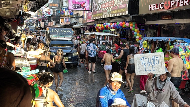 เมื่อเวลา 17.00 น. วันที่ 12 เมษายน 2569 ผู้สื่อข่าวรายงานว่า ภายในซอย 6 ถนนเลีขยบชายหาดพัทยา อ.บางละมุง จ.ชลบุรี กลุ่มผู้ประกอบการบาร์เบียร์ เริ่มเล่นน้ำสงกรานต์วันแรก โดยนักท่องเที่ยวชาวต่างชาติ และนักท่องเที่ยวชาวไทย เข้ามาเดินเล่นน้ำกันอย่างคึกคัก