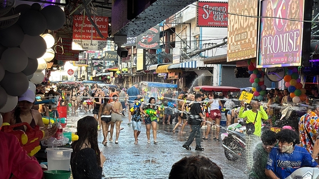 เมื่อเวลา 17.00 น. วันที่ 12 เมษายน 2569 ผู้สื่อข่าวรายงานว่า ภายในซอย 6 ถนนเลีขยบชายหาดพัทยา อ.บางละมุง จ.ชลบุรี กลุ่มผู้ประกอบการบาร์เบียร์ เริ่มเล่นน้ำสงกรานต์วันแรก โดยนักท่องเที่ยวชาวต่างชาติ และนักท่องเที่ยวชาวไทย เข้ามาเดินเล่นน้ำกันอย่างคึกคัก