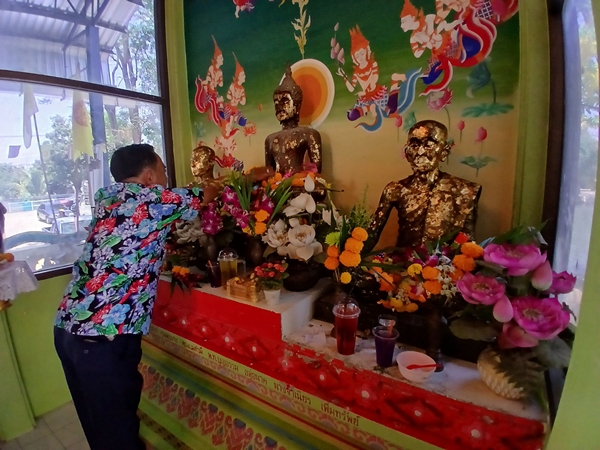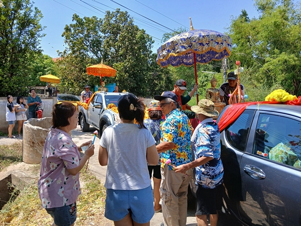 ในช่วงบ่ายชาวบ้านได้อัญเชิญหลวงพ่อพระครูสันทา กับหลวงพ่อพระครูวันเทียนขึ้นรถแห่ไปรอบหมู่บ้านเพื่อให้ชาวบ้านได้สรงน้ำเพื่อเป็นสิริมงคลแก่ครอบครัว