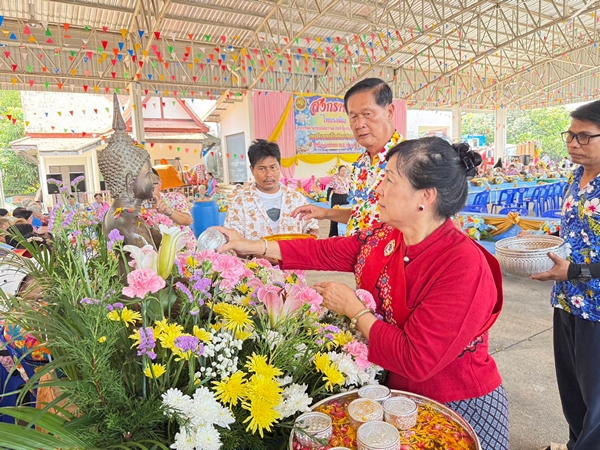ได้ร่วมประเพณีสงกรานต์ ประจำปี 2569 ส่วนบรรยากาศภายในงาน มีการจัดงานได้มีการทำบุญตักบาตรข้าวแช่ และประเพณีแห่หางหงษ์ธงตะขาบพร้อมขบวนแห่กลองยาว ตามด้วยสรงน้ำพระพุทธรูปและประเพณีรดน้ำดำหัวขอพรผู้สูงอายุ มีการแสดงบนเวที โดยมีดร.ธวัชชัย อึ้งอัมพรวิไล นายกเทศมนตรีเมืองบางกะดี และภรรยา นำขบวนรดน้ำดำหัวขอพรผู้สูงอายุในครั้งนี้ อีกด้วย