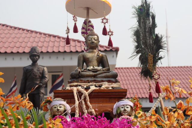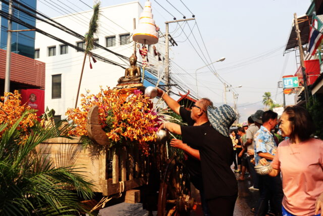 เมื่อเวลา 16.00 น. วันที่ 13 เมษายน ว่าที่ร้อยตรี พูนศักดิ์ ดีมั่น นายกเทศมนตรีตำบลแม่สะเรียง พร้อมด้วยชมรมรักษ์วัฒนธรรมแม่สะเรียง สภาวัฒนธรรมอำเภอแม่สะเรียง และส่วนราชการต่างๆ ร่วมกันจัดขบวนแห่พระเพชรและพระพุทธรูปจากหัววัดสำคัญในพื้นที่ โดยเคลื่อนขบวนออกจากหน้าที่ว่าการอำเภอแม่สะเรียง ไปตามถนนสายหลักในเขตเทศบาลตำบลแม่สะเรียง ตลอดเส้นทางมีพี่น้องประชาชนและนักท่องเที่ยว มารอถวายดอกไม้และสรงน้ำขมิ้นส้มป่อยกันอย่างเนืองแน่น บรรยากาศเต็มไปด้วยความสนุกสนานจากการเล่นน้ำสงกรานต์ควบคู่ไปกับการรักษาธรรมเนียม