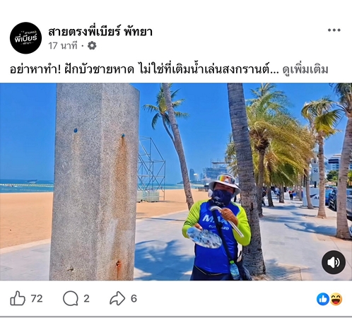 ชลบุรี-นทท.ถอดฝักบัวชายหาดพัทยา เติมน้ำปืนสงกรานต์ สร้างความเดือดร้อนให้กับนักท่องเที่ยว