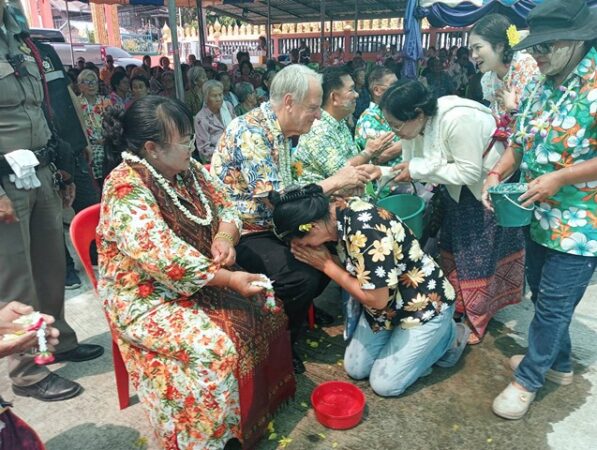 นางสาวลำพรรณกล่าวอีกว่า นอกจากนี้ ยังเป็นการส่งเสริมและสนับสนุนให้เด็ก เยาวชน และประชาชนเห็นถึงความสำคัญของผู้สูงอายุและขนบธรรมเนียมประเพณีไทย ส่งเสริมให้ความรู้เกี่ยวกับการดูแลสุขภาพผู้สูงอายุและการตรวจสุขภาพ เพื่อส่งเสริมให้ชุมชน เกิดความรัก สามัคคีในชุมชน และมีการแสดงออกในสิ่งที่ดี ทั้งนี้ เพื่อเป็นการสร้างความสัมพันธ์ที่ดีในชุมชน ทุกคนในครอบครัว ทั้งผู้ปกครอง ลูกหลาน ที่กลับมาเยี่ยมบ้าน จึงได้จัดกิจกรรมทั้งงานวันครอบครัว และวันผู้สูงอายุ มีการรำบูชาและนมัสการมหาเจดีย์อนุสรณ์สถาน เพื่อความเป็นสิริมงคล รดน้ำขอพร สรงอัฐิบรรพบุรุษ แสดงความกตัญญูกตเวที และร่วมสนุกสนานกับรำวง 2 เวที มีทั้งรำวงผู้สูงอายุ และรำวงย้อนยุคการกุศล หางบประมาณบำรุงพระพุทธศาสนา กองทุนสวัสดิการผู้สูงอายุและชุดรักษาความปลอดภัยหมู่บ้านหรือ ชรบ. บรรยากาศเป็นไปด้วยความชุ่มฉ่ำ สนุกสนาน