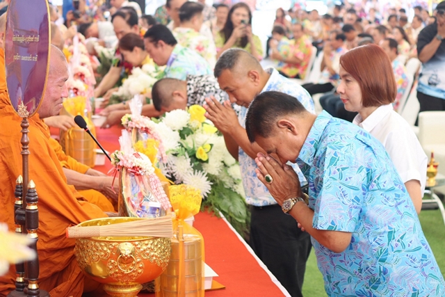 โดยในช่วงเช้าคณะผู้บริหาร พร้อมด้วย ประธานสภา รองประธานสภา เลขานายก อบจ. คณะสมาชิกสภา อบจ.สมุทรปราการ หัวหน้าส่วนราชการ ผอ.กอง หัวหน้าฝ่าย พนักงาน ลูกจ้าง ประชาชน และแขกผู้มีเกียรติร่วมพิธีทำบุญเลี้ยงพระ โดยได้นิมนต์พระสงฆ์ จำนวน 9 รูป โดยได้รับความเมตตาจาก พระราชสมุทรวัชราจารย์ เจ้าคุณบุญสืบ เจ้าอาวาสวัดกลางวรวิหาร พระอารามหลวงชั้นโท เป็นประธานฝ่ายสงฆ์