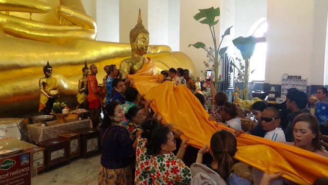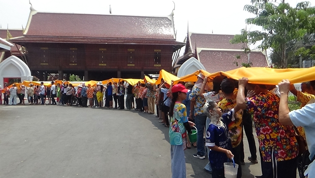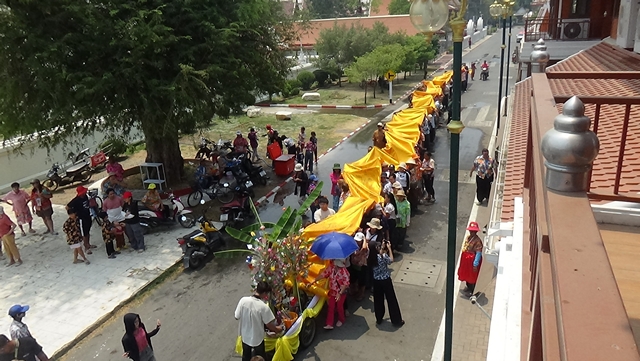 อ่างทอง อำเภอไชโย ร่วมกับวัดไชโยวรวิหาร จัดงานประเพณีแห่ผ้า 108 เมตรพร้อมสรงน้ำพระร้อย