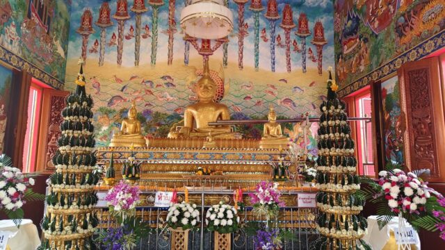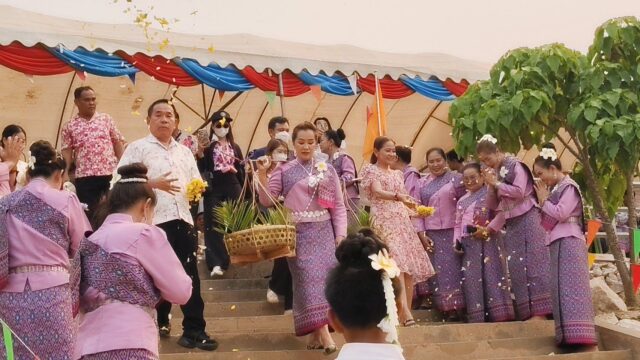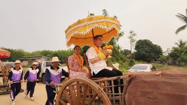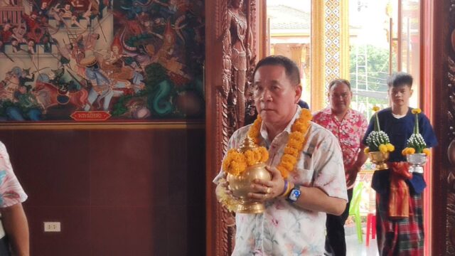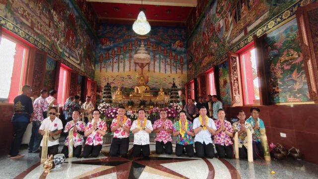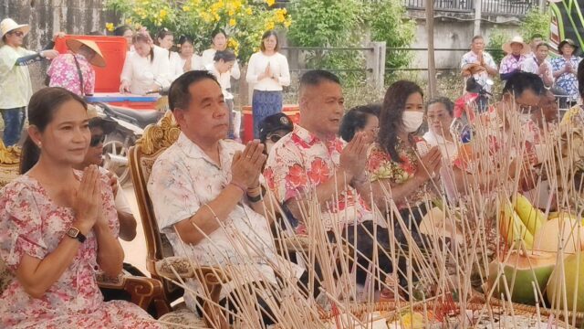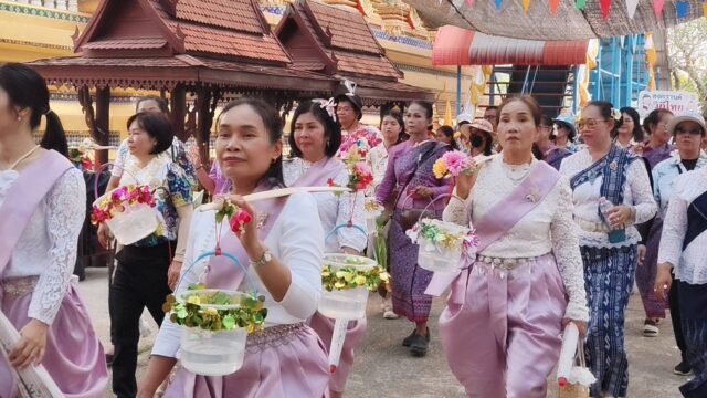 บึงกาฬ-พุทธศาสนิกชนร่วมแห่น้ำจั้นศักดิ์สิทธิ์ทางบก เจริญพระพุทธมนต์ สรงน้ำขอพร “หลวงพ่อพระใหญ่” ปิดท้ายสงกรานต์บึงกาฬ