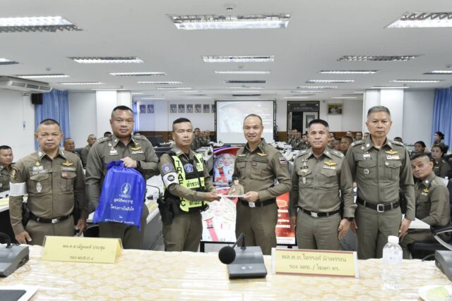 จากนั้น พล.ต.ท.ไตรรงค์ฯ ได้ประชุมติดตามกรณีเมื่อวันที่ 30 ธันวาคม 2568 มีชายแสดงตนเป็นทนายความ ไม่ปฏิบัติตามคำสั่งเจ้าพนักงานจราจรที่ได้ให้ตรวจวัดแอลกอฮอล์ มีการพูดจาข่มขู่เจ้าหน้าที่ตำรวจประจำด่านตรวจวัดแอลกอฮอล์ สภ.เมืองนครพนม โดยจากการตรวจสอบพบว่าเจ้าหน้าที่ที่ปฏิบัติหน้าที่คือ ด.ต.นิรุตต์ เจริญสุข ผบ.หมู่ (งานจราจร) สภ.เมืองนครพนม ปฏิบัติหน้าที่ตามมาตรฐานที่กำหนด และอดทนอดกลั้น โอกาสนี้ ได้มอบรางวัล “โฆษกยกนิ้ว” ให้กับ ด.ต.นิรุตต์ฯ เพื่อให้กำลังใจและแสดงความชื่นชมในการปฏิบัติหน้าที่จากกรณีดังกล่าว ยืนยันว่า หากข้าราชการตำรวจปฏิบัติหน้าที่ด้วยความสุจริต ถูกต้อง ผู้บังคับบัญชาทุกระดับก็จะดูแลปกป้อง ให้ความเป็นธรรม และให้กำลังใจผู้ใต้บังคับบัญชาทุกนาย