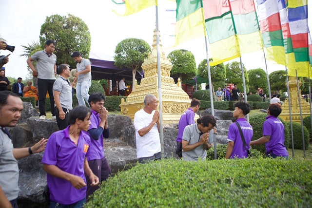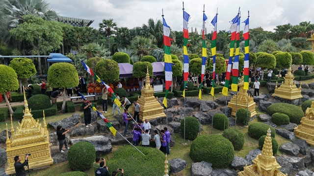 โดยนายกัมพล ตันสัจจา ประธานสวนนงนุชพัทยา เป็นประธานในพิธี พร้อมคณะผู้บริหารร่วมงานอย่างพร้อมเพรียง และได้นิมนต์ พระครูเกษมกิจโสภณ พร้อมพระสงฆ์รวม 9 รูป ประกอบพิธีเจิมแป้ง ปิดทอง และประพรมน้ำพระพุทธมนต์แก่ธงมนตราทั้ง 9 ผืน ท่ามกลางความสนใจของนักท่องเที่ยวทั้งชาวไทยและต่างชาติ