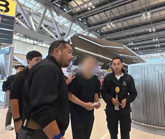 ต่อมาเมื่อวันที่ 22 เม.ย.2569 เวลาประมาณ 12.00 น. ขณะเจ้าหน้าที่เข้าตรวจสอบเป้าหมายในพื้นที่พัทยา ปรากฏว่าผู้ต้องสงสัยไหวตัวทัน หลบหนีขึ้นรถออกจากที่พัก มุ่งหน้าสนามบินสุวรรณภูมิ เจ้าหน้าที่จึงไล่ติดตามอย่างกระชั้นชิด ก่อนกระจายกำลังค้นหาภายในโถงผู้โดยสารขาออก กระทั่งพบตัว MR.WESLEY อายุ 37 ปี สัญชาติแคนาดา กำลังปะปนผู้โดยสารและเตรียมเช็คอินเพื่อหลบหนีออกนอกประเทศ จึงเข้าควบคุมตัวเพื่อตรวจสอบ โดยไม่พบยาเสพติดในตัว