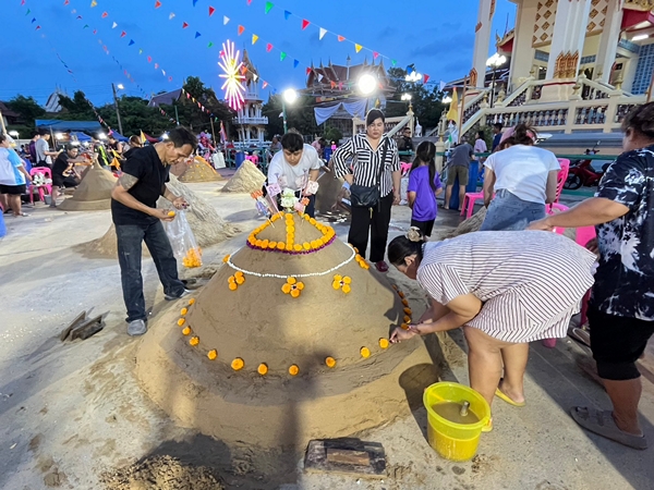 และวันที่ 24 เมษายน 2569 เวลา 07.30 น. ให้พุทธศาสนิกชนได้ร่วมทำบุญตักบาตร เป็นการฉลององค์พระเจดีย์ทราย โดยทางวัดจัดให้มีมหรสพ การแสดงดนตรี หนังกางแปลง บ้านลม และการละเล่นเพื่อความสนุกสนานรื่นเริง