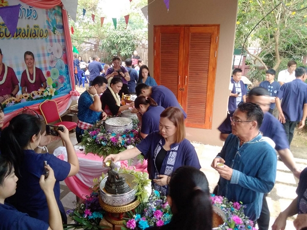 ลำพูน – ประชาชนและหน่วยงานต่างๆในอำเภอป่าซาง ร่วมพิธีสระเกล้าดำหัว สรงน้ำพระพุทธรูป กิจกรรมรดน้ำดำหัว นายอำเภอป่าซาง และ นายกกิ่งกาชาดอำเภอป่าซาง