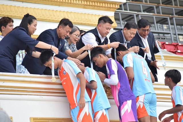 นายมงคล วิมลรัตน์ อธิบดีกรมพลศึกษา มอบหมายให้ นายสุรัตน์ จรณโยธิน รองอธิบดีกรมพลศึกษา เป็นประธานมอบรางวัลการแข่งขันฟุตบอลกีฬาระหว่างโรงเรียน กรมพลศึกษา ประจำปี 2568 รุ่นอายุไม่เกิน 16 ปี ประเภททั่วไป รอบชิงชนะเลิศ โดยมี นายสิโรตม์ มียศ ผู้อำนวยการสำนักการกีฬา นางสาวชัชฎาพร พิทักษ์เสถียรกุล ผู้เชี่ยวชาญเฉพาะด้านวิทยาศาสตร์การกีฬา