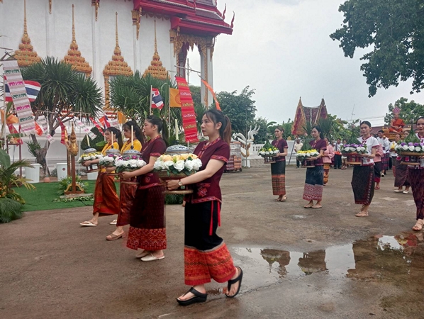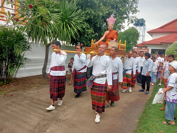 นอกจากนี้ยังพรั่งพร้อมด้วยขบวนนางรำ ขบวนพานบุบผาชาติโดยสาวพรหมจารี และสีสันอยู่ที่ขบวนแห่เสลี่ยง และเดินเหยียบไปบนแผ่นหลังของญาติโยม ที่นอนรอยาวเหยียดไปถึงศาลาการเปรียญ ทั้งนี้ เพื่อความเป็นสิริมงคลแก่ทุกคนร่วมพิธี ที่ต่างมีความสุข อิ่มบุญ อิ่มใจ ไปตามๆกัน ถือเป็นการร่วมทำบุญใหญ่อีกครั้งหนึ่ง หลังจากเทศกาลสงกรานต์ผ่านพ้นไป