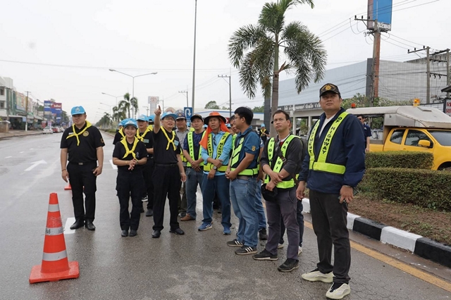 ร่วมกันฉีดน้ำแรงดันสูงล้างพื้นถนนและกวาดน้ำทำความสะอาดพื้นถนนบริเวณวัดประชานิยม พระอารามหลวง พื้นที่รับเสด็จฯ พระบาทสมเด็จพระเจ้าอยู่หัว และสมเด็จพระนางเจ้าฯพระบรมราชินี เสด็จพระราชดำเนินทรงประกอบพิธีตัดหวายลูกนิมิตพระอุโบสถ ณ วัดประชานิยม พระอารามหลวง อำเภอเมืองกาฬสินธุ์ จังหวัดกาฬสินธุ์ ในวันเสาร์ที่ 16 พฤษภาคม 2569