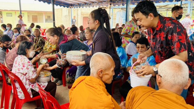 ต่อด้วยพิธีที่เปี่ยมไปด้วยรอยยิ้มและคราบน้ำตาแห่งความปิติ คือ “พิธีรดน้ำขอพรผู้สูงอายุ” เนื่องในเทศกาลสงกรานต์ นำโดย นายชูศักดิ์ พรนิมิตทรัพย์ ผู้ใหญ่บ้านหมู่ 9 พร้อมการมอบข้าวสารอาหารแห้งเพื่อเป็นขวัญและกำลังใจแก่ผู้สูงวัยในหมู่บ้าน ตอกย้ำการดูแลกันและกันของคนในชุมชนที่ “ไม่ทิ้งใครไว้ข้างหลัง”
