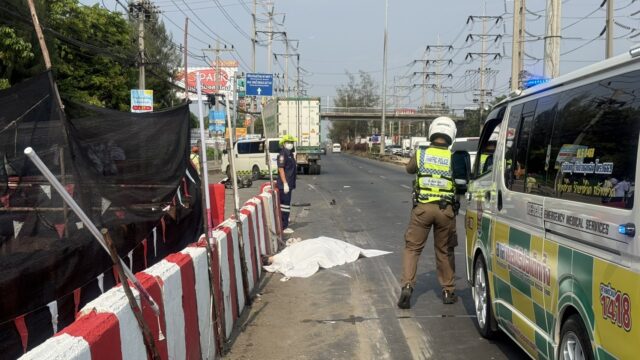 เมื่อเวลา 15.30 น. วันที่ 27 เมษายน 2569 พ.ต.ท.ศิโรจน์ แนบเนียน รอง ผกก.(สอบสวน) สภ.คลองหลวง รับแจ้งมีอุบัติเหตุ รถเทรลเลอร์ 22 ล้อ (บรรทุกตู้คอนเทนเนอร์) เฉี่ยวชนกับรถจักรยานยนต์ เป็นเหตุให้มีผู้เสียชีวิตเป็นหญิง 1 ราย ที่บริเวณถนนบางขันธ์-หนองเสือ (ฝั่งมุ่งหน้า สภ.คลองหลวง) บริเวณหน้าโรงเรียนไทยรัฐวิทยา 69) ตำบลคลองหนึ่ง อำเภอคลองหลวง จังหวัดปทุมธานี ภายหลังรับแจ้ง จึงรุดไปตรวจสอบที่เกิดเหตุ พร้อมด้วย แพทย์นิติเวชโรงพยาบาลธรรมศาสตร์เฉลิมพระเกียรติ ,เจ้าหน้าที่ตำรวจจราจร สภ.คลองหลวง ,รถกู้ชีพเทศบาลเมืองท่าโขลง พร้อมด้วย เจ้าหน้าที่และอาสาสมัครมูลนิธิป่อเต็กตึ๊ง (จุดวัฒนะโยธิน)