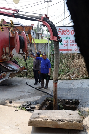 เบื้องต้นพบว่าในพื้นที่ดังกล่าวมีเศษดิน โคลน และสิ่งปฏิกูลสะสมอยู่ในท่อระบายน้ำเป็นจำนวนมาก และเมื่อเกิดฝนตกหนักทำให้ไม่สามารถระบายน้ำได้ทันส่งผลให้เกิดปัญหาน้ำท่วมขังถนนและบ้านเรือนประชาชนอยู่เป็นประจำ แต่เนื่องจากเทศบาลตำบลบ้านคลอง ไม่มีรถฉีดล้างทำความสะอาดท่อระบายน้ำจึงขอรับการสนับสนุนจากองค์การบริหารส่วนจังหวัดพิษณุโลกมาช่วยดำเนินการฉีดล้างทำความสะอาดท่อระบายน้ำเพื่อแก้ไขปัญหาความเดือดร้อนให้กับประชาชน และเมื่อดำเนินการแล้วเสร็จจะช่วยให้ระบายน้ำในเขตชุมชนได้สะดวกมากขึ้น และป้องกันปัญหาน้ำท่วมขังที่อาจเกิดขึ้นในช่วงฤดูฝนที่กำลังจะมาถึงนี้ด้วย.