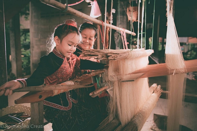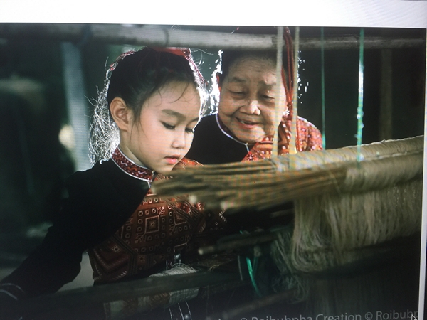 สำหรับแม่คำสอน สระทอง ปัจจุบันอายุ 87 ปี จบการศึกษาระดับประถมศึกษาปีที่ 4 ด้วยความพากเพียร และความสนใจเรื่องการทอผ้า ได้ยึดถือการทอผ้าไหมแพรวามาตั้งแต่อายุ 19 ปี จนถึงปัจจุบัน ทั้งเป็นผู้รวมกลุ่มผู้ไทยบ้านโพน ร่วมทอผ้าแพรวา ควบคุมคุณภาพ โดยลายแพรวาที่ทอออกมาครั้งแรก คือ ลายนาค จากแม่สามีคือ คุณย่าเบ็ง สระทอง ซึ่งเป็นครูคนแรกและเรียนรู้มาเรื่อยๆ โดยเฉพาะได้รับคำแนะนำจาก พระราชเสาวนีย์ของสมเด็จพระนางเจ้าฯ พระบรมราชินีนาถ “พระพันปีหลวง”