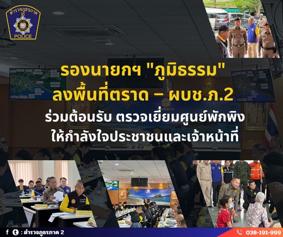 รองนายกฯ “ภูมิธรรม” ลงพื้นที่ตราด – ผบช.ภ.2 ร่วมต้อนรับ ตรวจเยี่ยมศูนย์พักพิงให้กำลังใจประชาชนและเจ้าหน้าที่