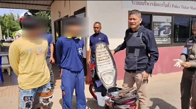 มุกดาหาร -บุกจับคาบ้าน! รวบ 3 หนุ่มนิคมคำสร้อย ซุกยาบ้า 165 เม็ดในถังน้ำมันรถ จยย.