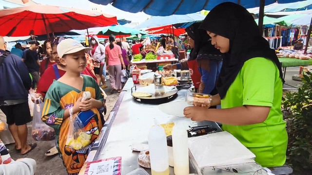 สงขลา-สีสัน นักเรียนสาว ม.2 ใช้เวลาว่างวันหยุด ช่วยคุณแม่ขายโรตีในตลาดนัด เป็นการเรียนรู้ป…