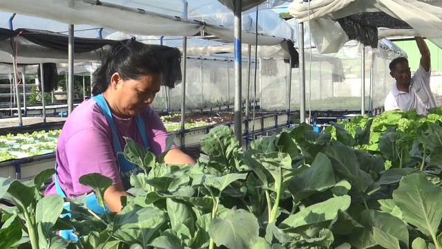 สงขลา-เกษตรกรสองสามีภรรยาเก็บผักกาดขาว และผักคะน้าเห็ดหอมไฮโดรโปนิกส์ “ผักไร้ดิน” ขายส่งให…