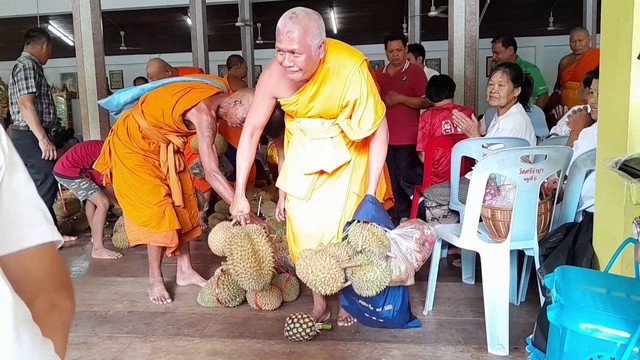 สุโขทัย-งานบุญสลากภัตรทุเรียนหอมกรุ่นละมุนทั่วทั้งศาลาวัด ที่ศาลาการเปรียญวัดศรีจำปา บ้านด…