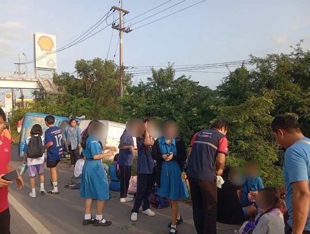 ร้อยเอ็ด…เกือบไปแล้ว…กระบะชนท้ายรับส่งนักเรียนพลิกคว่ำเทกระจาดเจ็บหลายราย