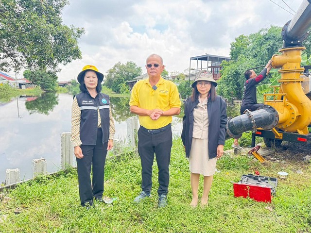 ปทุมธานี ”นายกอำนวย“ลงพื้นที่ตรวจระดับน้ำประตูระบายน้ำเพื่อป้องกันน้ำเอ่อท่วมบ้านเรือน เ…