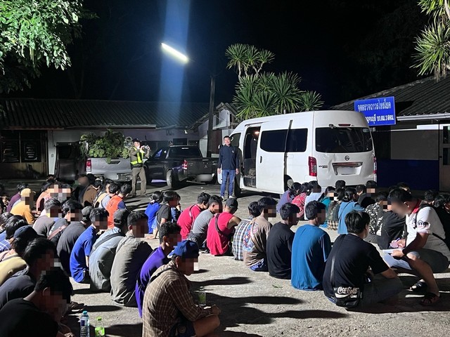 ตม.จว.กาญจนบุรี สกัดจับ 90 เมียนมา โดยลักลอบขนแรงงานต่างด้าว เลี่ยงจุดตรวจถาวรไทรโยค